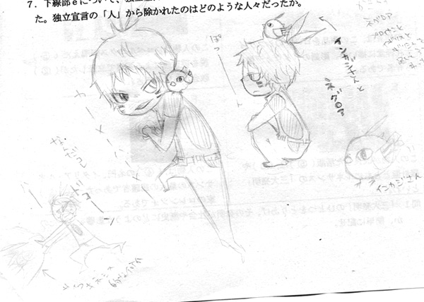 問題用紙に落書きしてできた子。